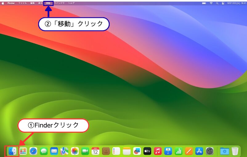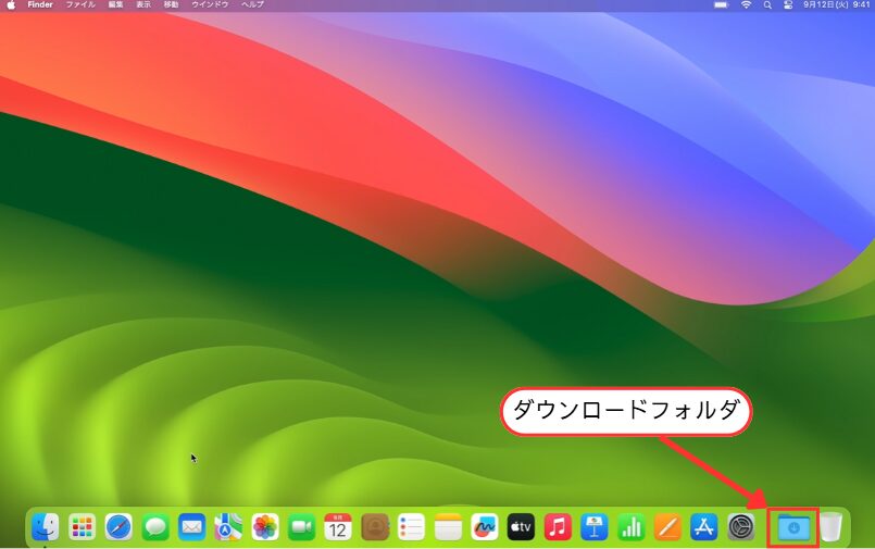 このマークが見当たらない場合、Dockにダウンロードフォルダを追加する必要があります。