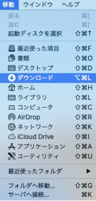 「移動」をクリックすると様々なフォルダの一覧が出てくるので「ダウンロード」をクリックするとダウンロードフォルダ内に移動できます。