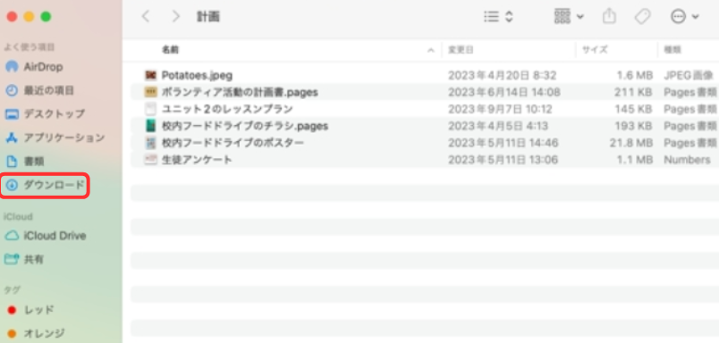 基本的にchromeやSafariを使っている人はファイルをダウンロードした場合、このダウンロードフォルダに保存されるようになっています。
