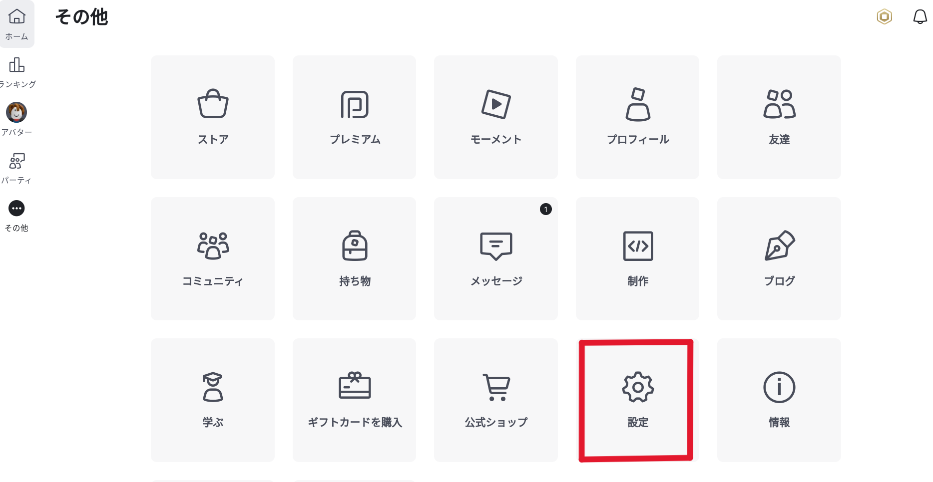 2. 歯車マークの「設定」をタップ。