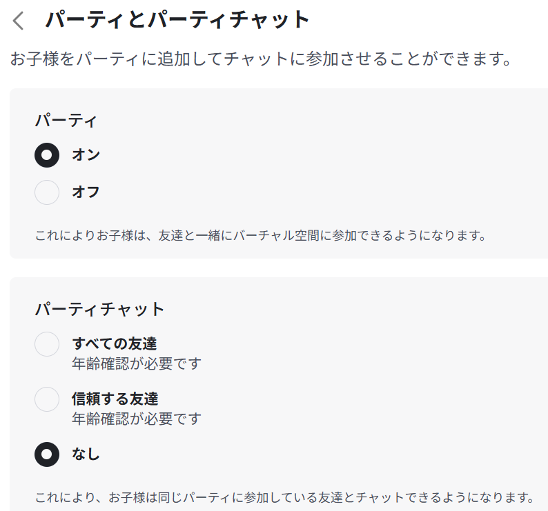 「パーティとパーティチャット」は、友達と一緒にゲームに参加したり、同じパーティ内の他のプレイヤーとチャットができる機能です。