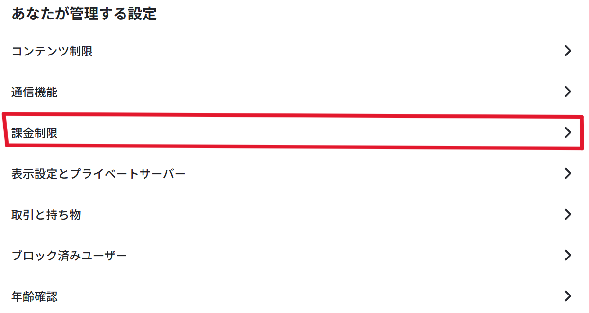 2. 一番下まで行くと「課金制限」から制限をかけられます