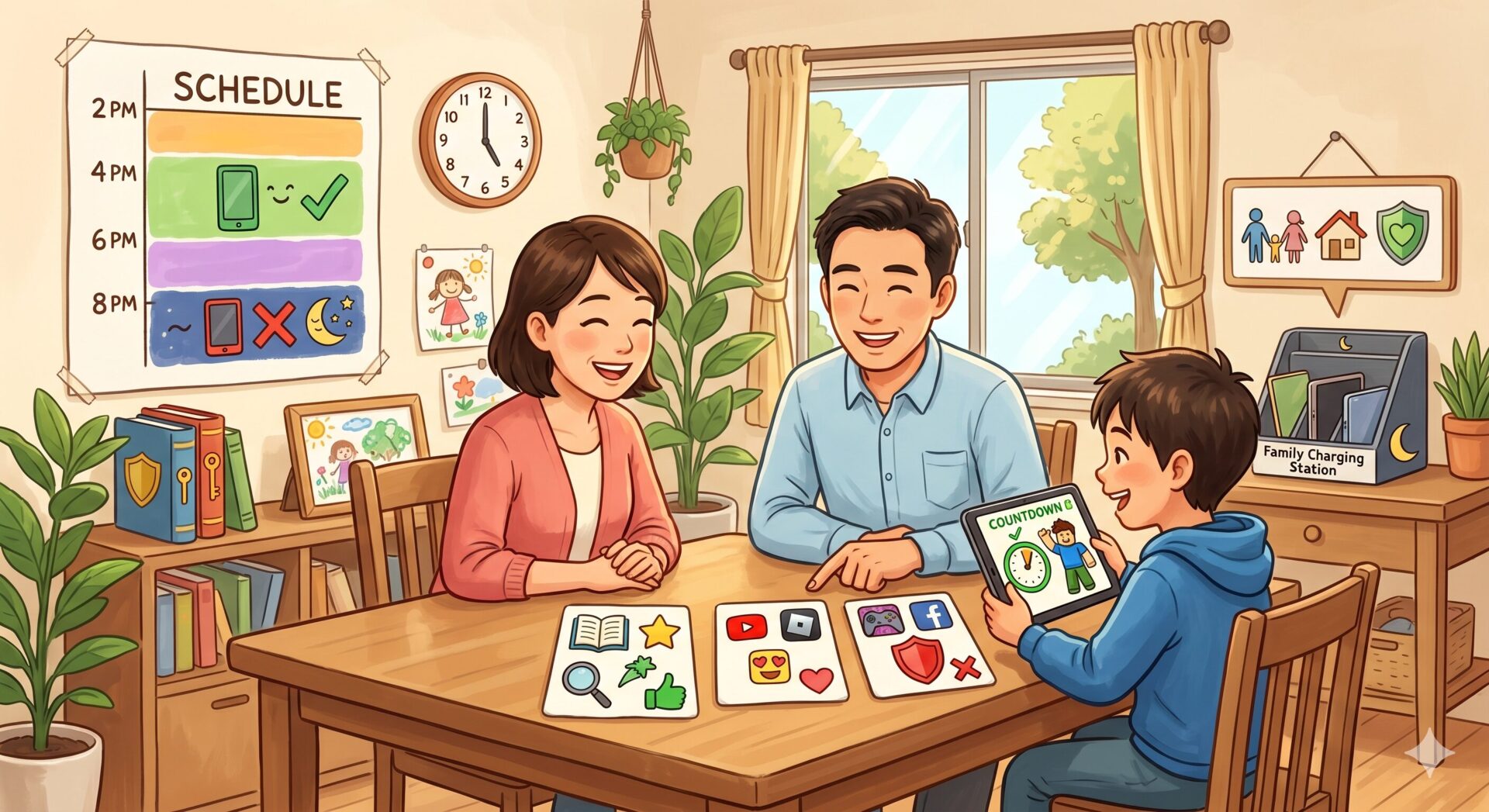 システムの設定に加えて、お子さん自身のネットリテラシー(ITを使いこなす力)を育てるために、ご家庭でのルール作りが欠かせません。