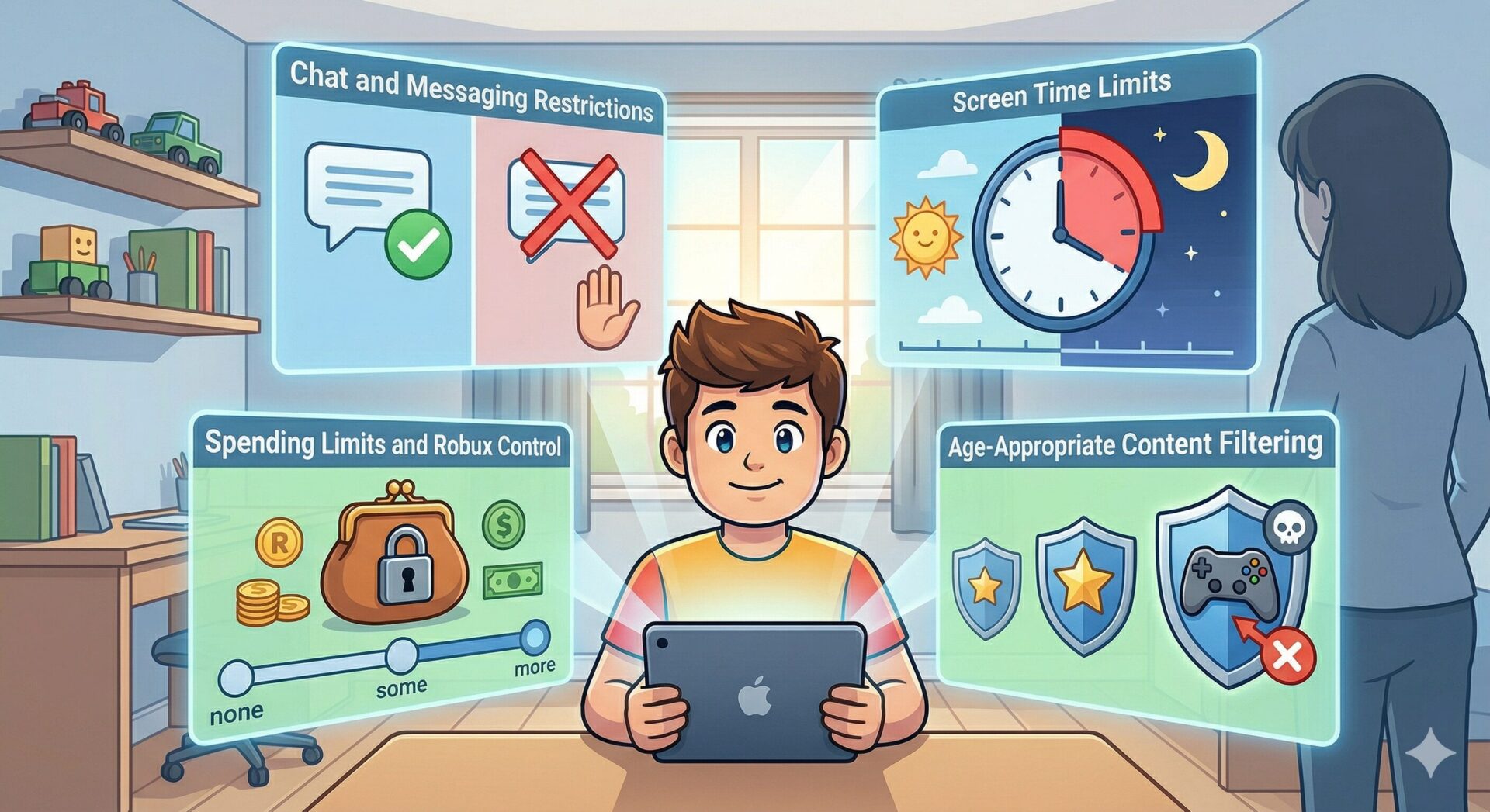 こうしたトラブルを防ぐために、ロブロックスには強力な「保護者コントロール」機能が備わっています。