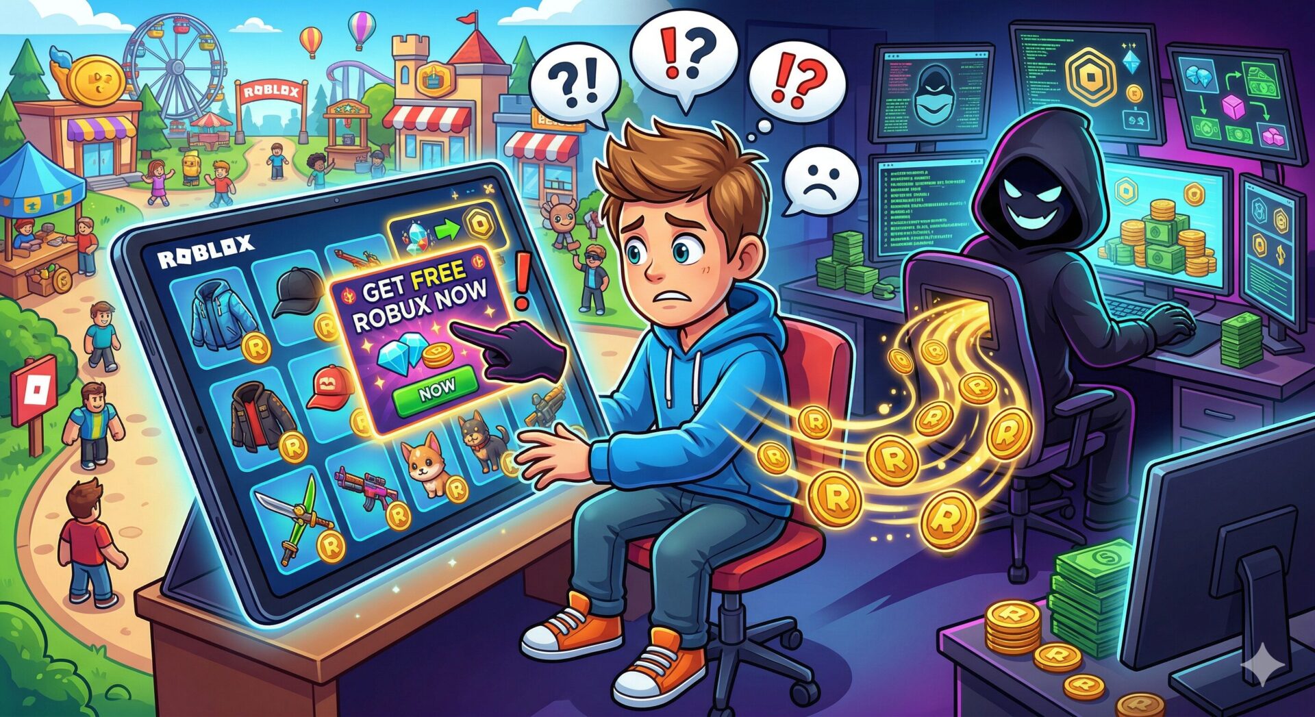 また、「無料でRobuxをあげるよ」と外部サイトに誘導し、パスワードなどの個人情報を盗み取る詐欺も横行しています。