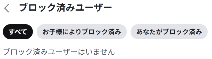 「ブロック済みユーザー」では親御さんもお子さんもブロックしたユーザーを確認できます。