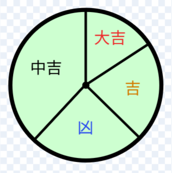 (ピザみたいに線をいれてみよう。「大吉だいきち」「きち」「中吉ちゅうきち」「きょう」の場所はきな文字でOK!)