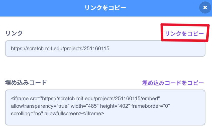 ※下の「みコードをコピー」はちがうので、注意ちゅういしよう!