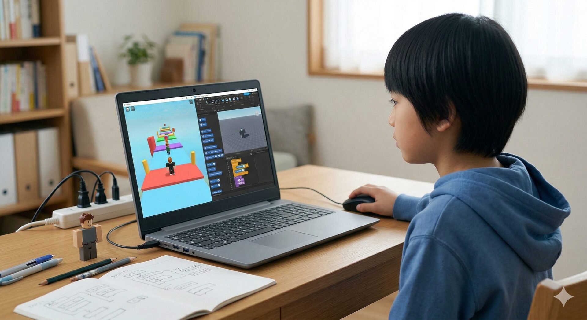 とはいえ、いきなりロブロックスの本格的な3Dゲーム開発(Lua言語)は、小学生には少しハードルが高いかもしれません。
