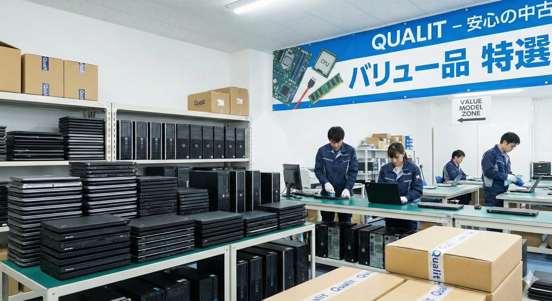 ここは、一般の個人からの買取ではなく、「法人のリースアップ(企業がレンタルしていたPCの返却品)」を専門に扱っています。