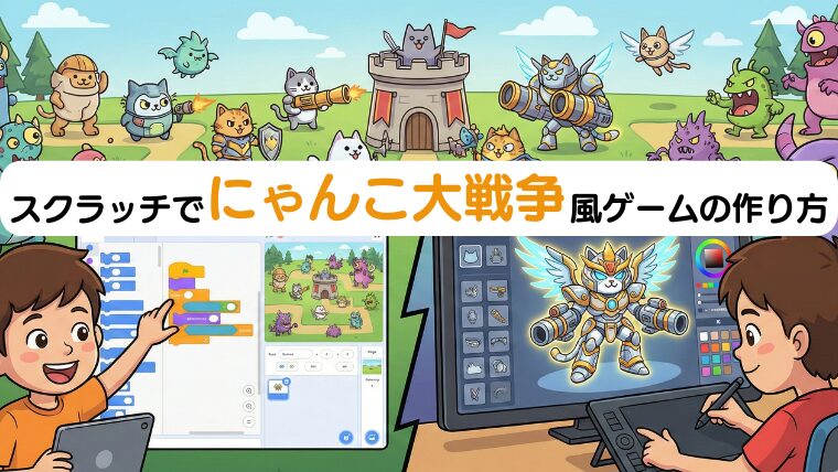 そんなキミのために、今回はスクラッチで「にゃんこ大戦争」を作る方法を説明するよ。